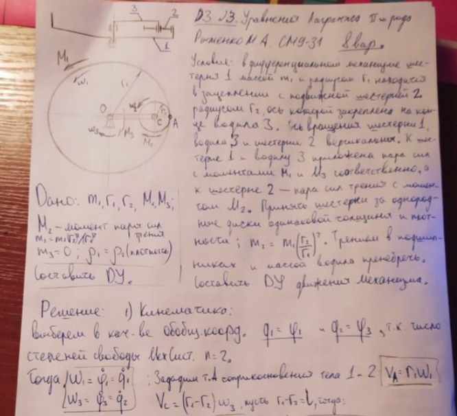Типовой расчет по теоретической механике, "Уравнения Лагранжа 2-го рода", зачтено