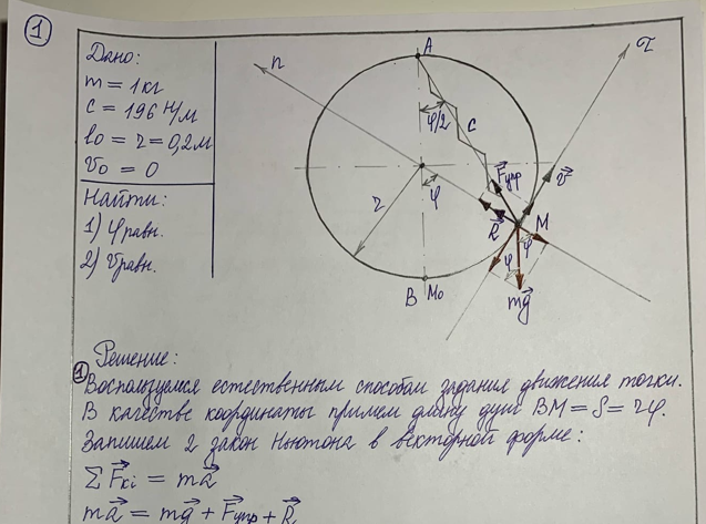 Типовой расчет по теоретической механике, "Динамика точки", зачтено