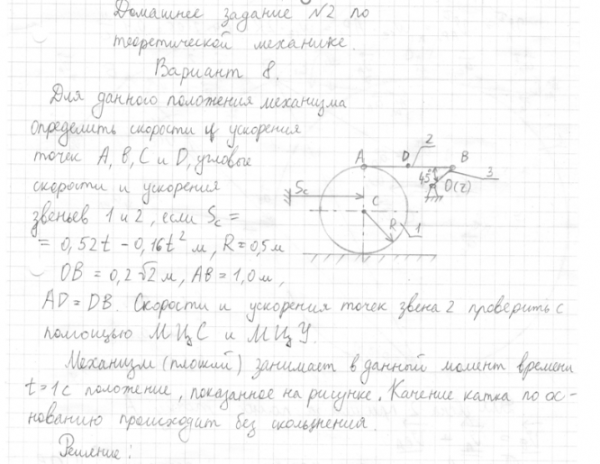 ДЗ 2: Кинематика плоского движения твердого тела вариант 8
