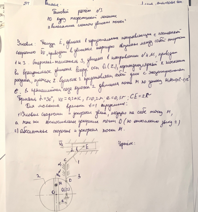 Типовой расчет по теоретической механике, "Кинематика сложного движения точки", зачтено
