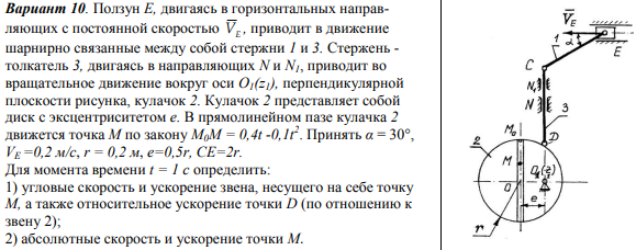 ДЗ 3: Кинематика сложного движения точки вариант 10