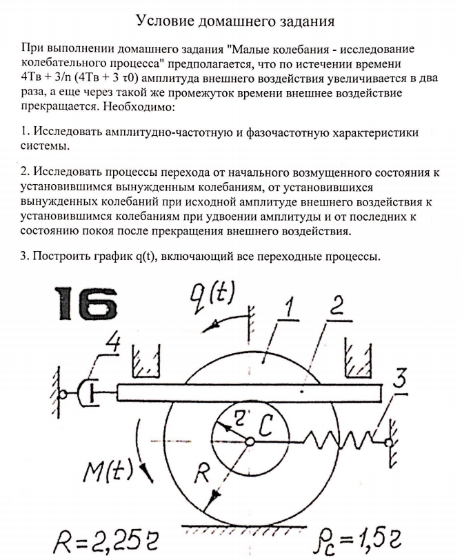ДЗ 2: Колебания линейной системы с одной степенью свободы вариант 16
