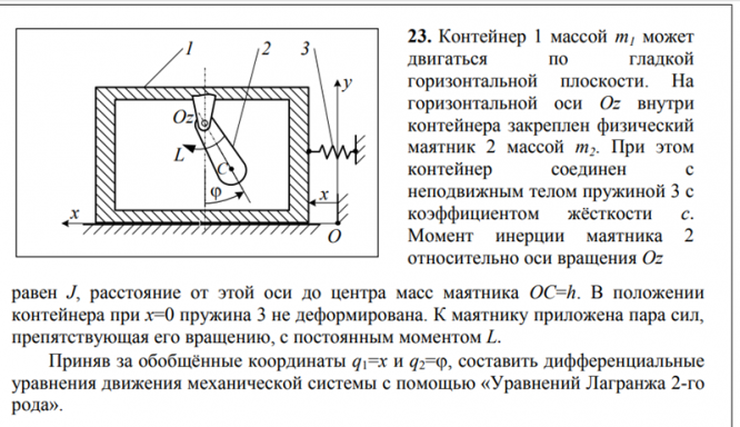 ДЗ 3: Уравнения Лагранжа 2-го рода вариант 23