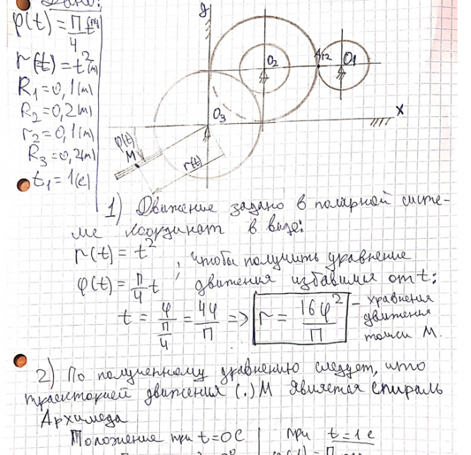 Типовой расчет по теоретической механике, "Кинематика точки", (только 1-ая часть) зачтено