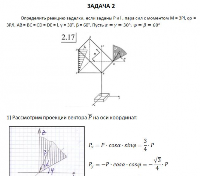 Решенные задачи по плоской и пространственной статике, 4 штуки, зачтено