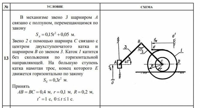 ДЗ 2: Кинематика плоского движения твердого тела вариант 13