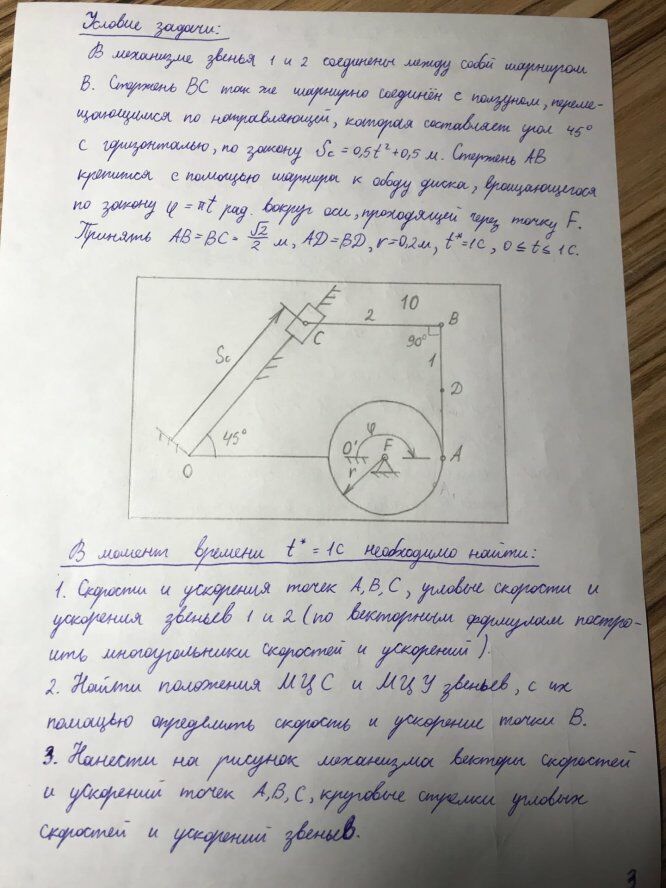 ДЗ 2: Кинематика плоского движения твердого тела вариант 10