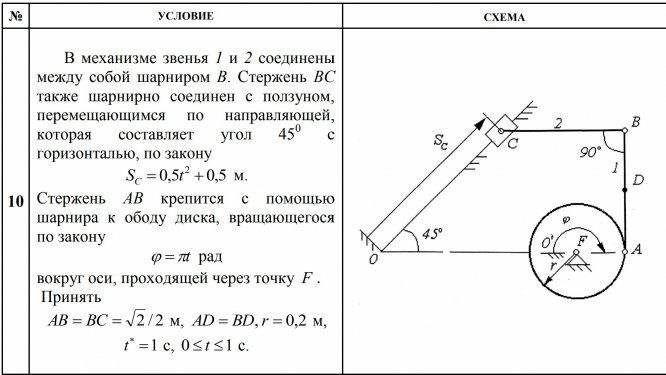 Вариант 10 - ДЗ №2 - Кинематика плоского движения твердого тела