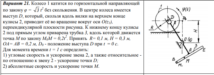 ДЗ 3: Кинематика сложного движения точки вариант 21