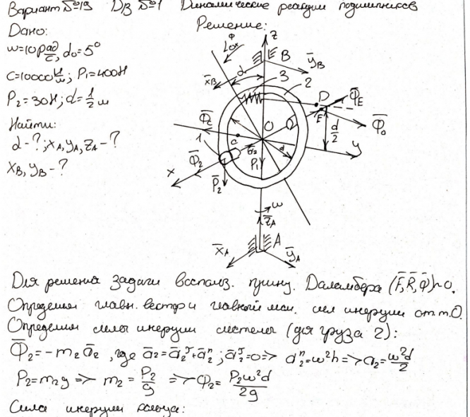 Типовой расчет по теоретической механике, "Динамические реакции подшипников", зачтено