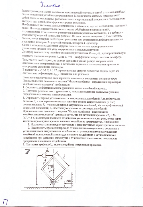 ДЗ 2: Колебания линейной системы с одной степенью свободы вариант 7