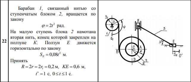 ДЗ 2: Кинематика плоского движения твердого тела вариант 22