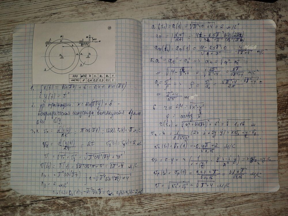 ДЗ 1: Кинематика точки и простейших движений твердого тела вариант 19
