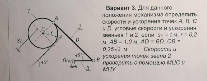 ДЗ 2: Кинематика плоского движения твердого тела вариант 3