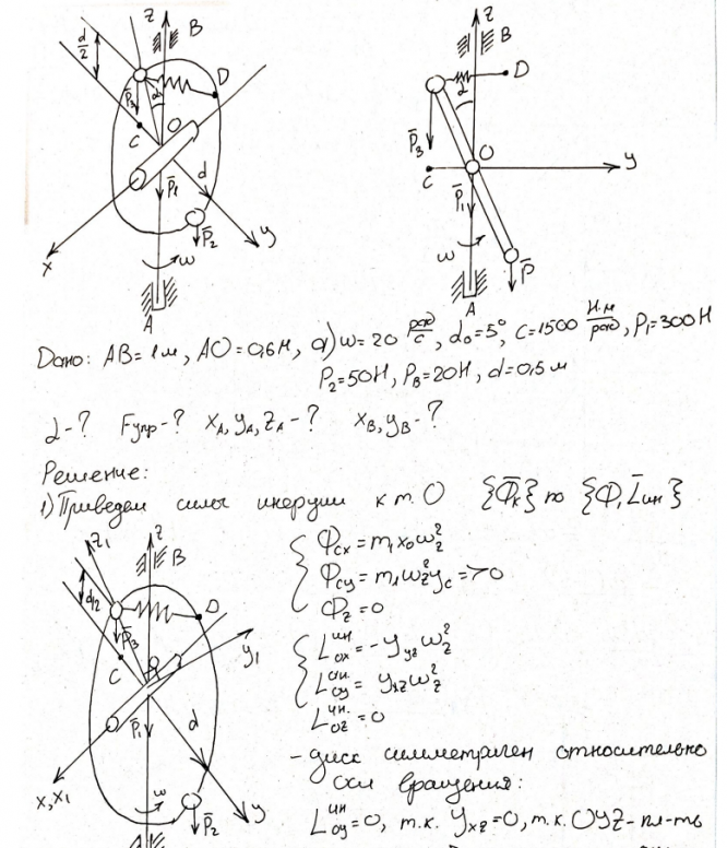 Типовой расчет по теоретической механике, "Динамические реакции подшипников" (А), (Б), зачтено