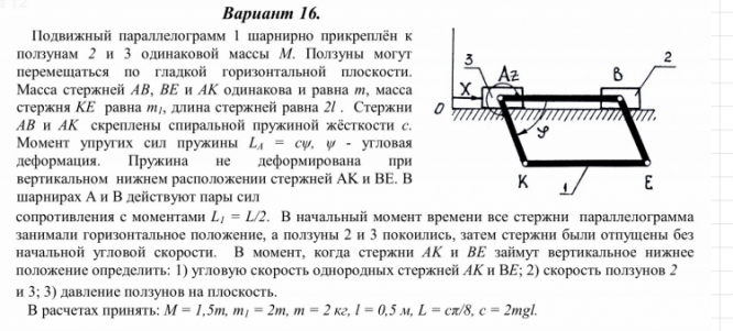 ДЗ 2: Общие теоремы динамики вариант 16