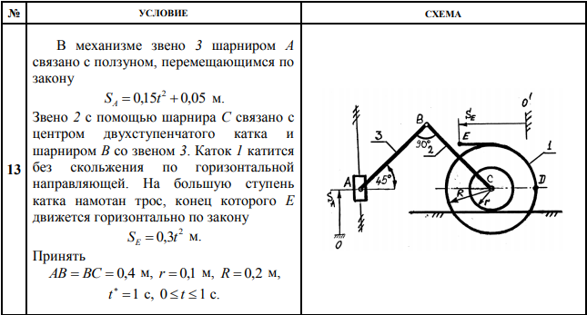 ДЗ 2: Кинематика плоского движения твердого тела вариант 13