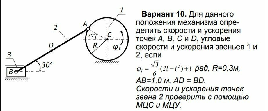 ДЗ 2: Кинематика плоского движения твердого тела вариант 10