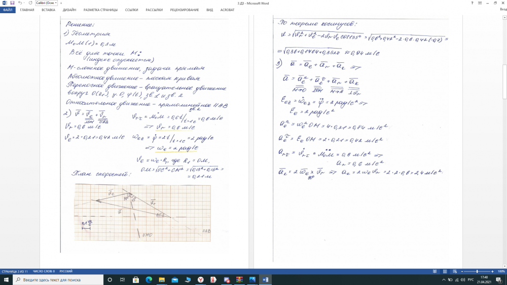 ДЗ 3: Кинематика сложного движения точки вариант 14