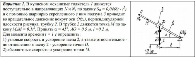 В файле зачтенное ДЗ-3 Кинематика сложного движения точки для 1 варианта. Графики и планы сделаны на миллиметровке.