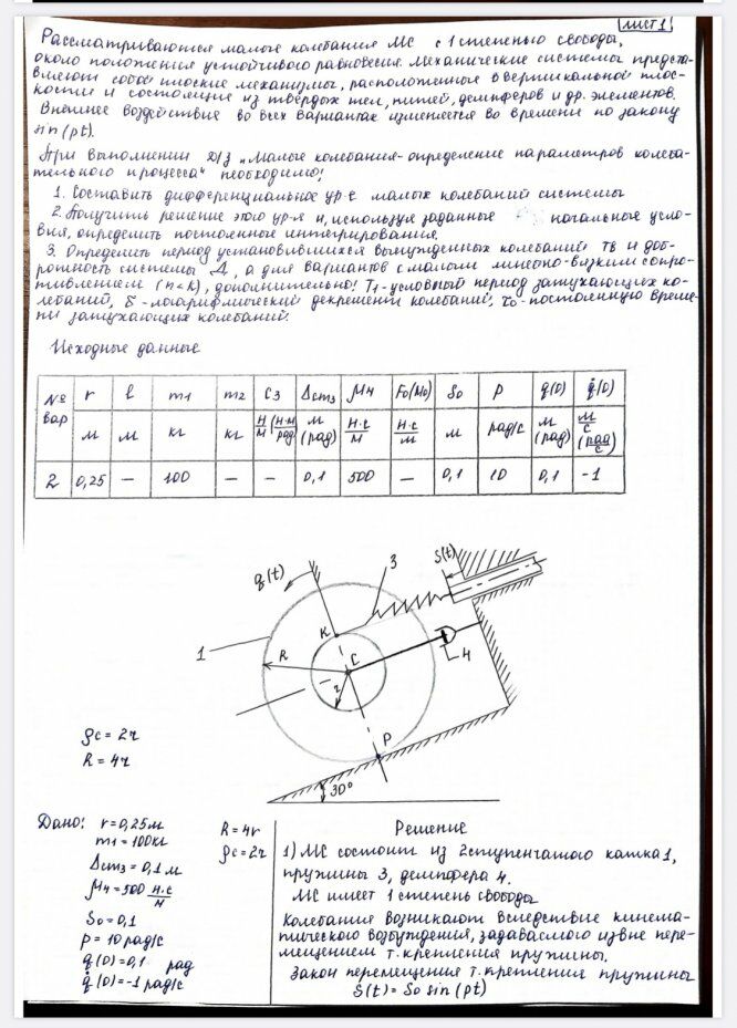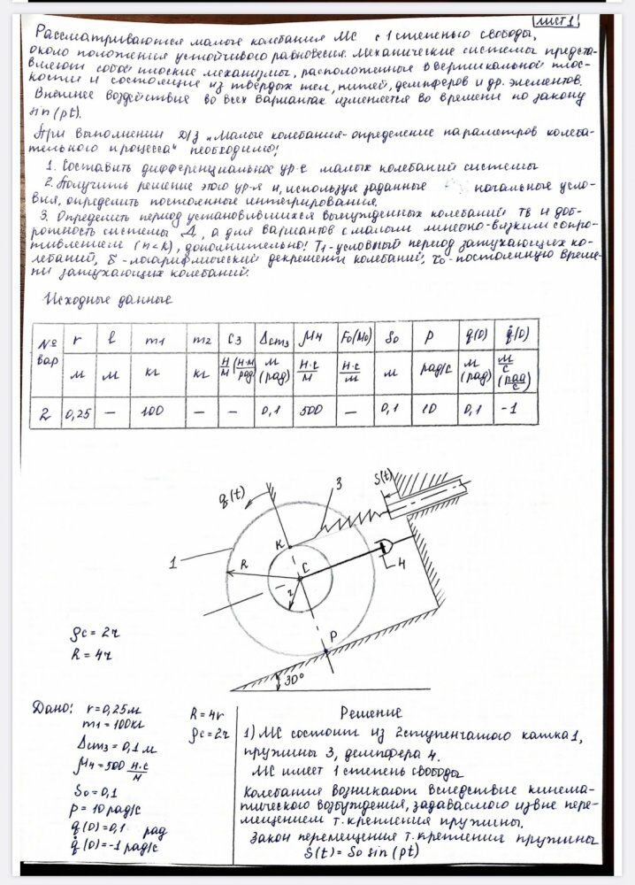 ДЗ 2: Колебания линейной системы с одной степенью свободы вариант 2