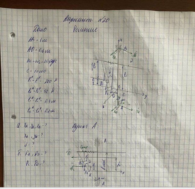 Вариант 20 - ДЗ №1 - Динамические реакции подшипников