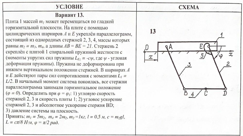 ДЗ 2: Общие теоремы динамики вариант 13