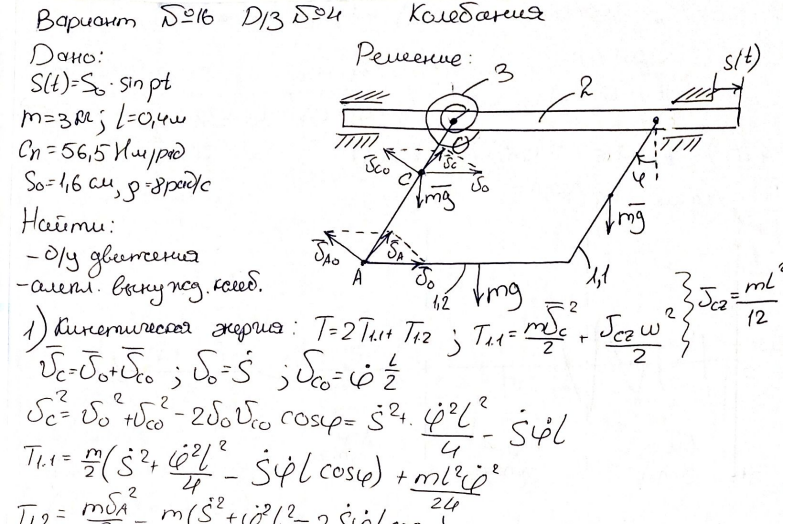 Типовой расчет по теоретической механике, "Колебания", зачтено