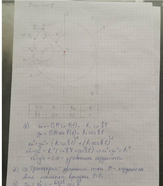 ДЗ 1: Кинематика точки и простейших движений твердого тела вариант 8