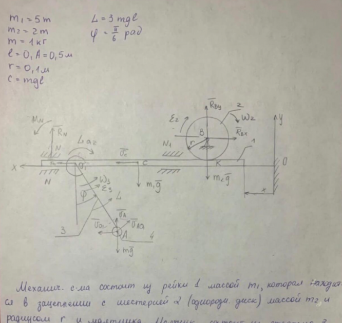 Типовой расчет по теоретической механике, "Общие теоремы динамики", зачтено