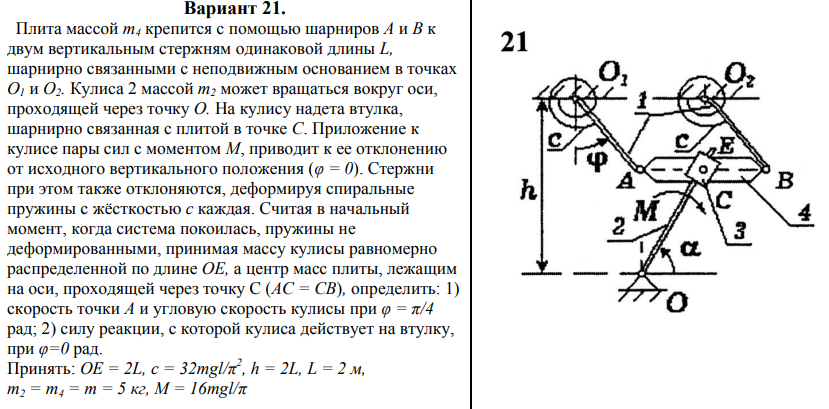 ДЗ 2: Общие теоремы динамики вариант 21