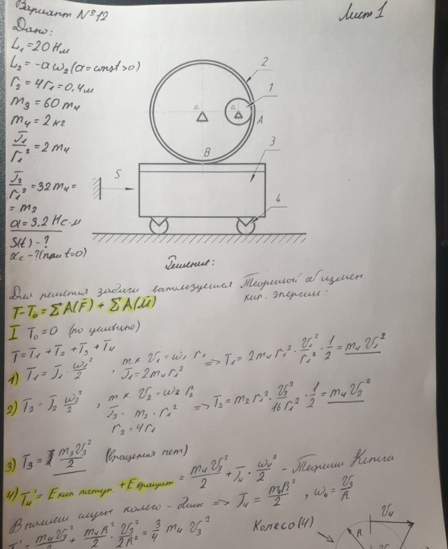 Типовой расчет по теоретической механике, "Общие теоремы динамики", зачтено