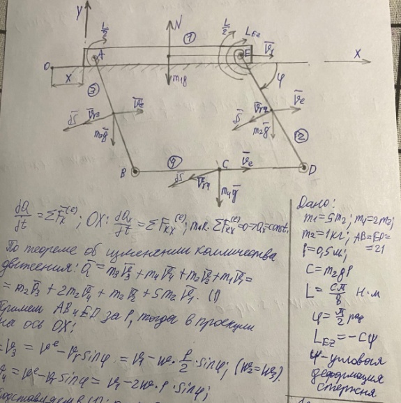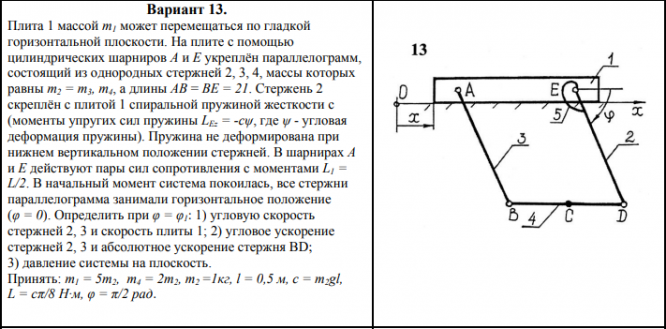 ДЗ 2: Общие теоремы динамики вариант 13