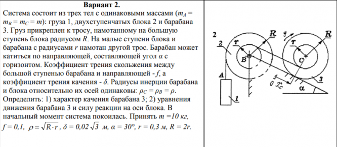 Определён характер движения, найдено уравнение движения и реакция на оси блока.
