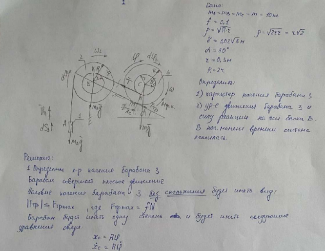 Типовой расчет по теоретической механике, "Общие теоремы динамики", зачтено