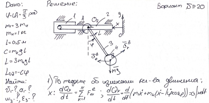 Вариант 20 - Дз №2 "Общие теоремы динамики"
