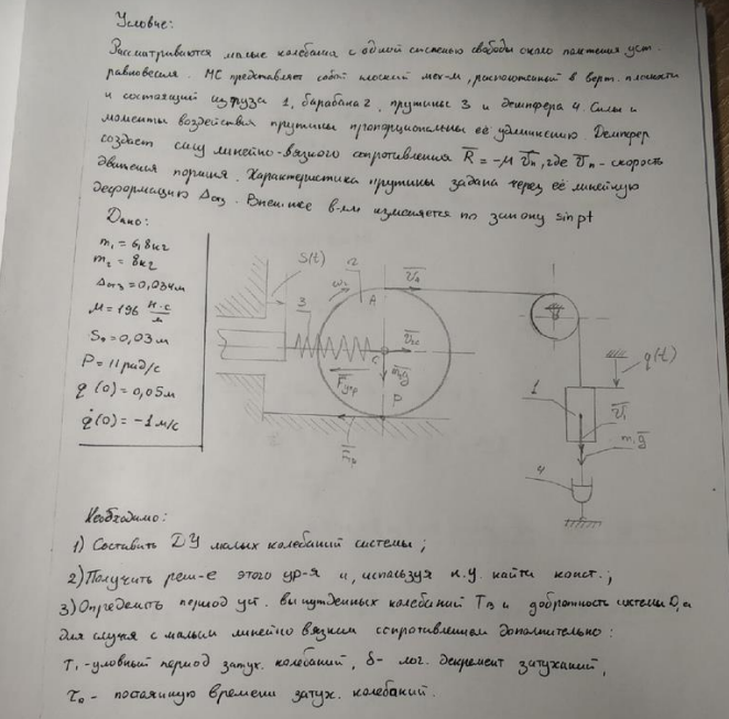 Типовой расчет по теоретической механике, "Колебания", зачтено