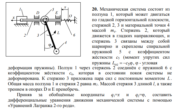 ДЗ 3: Уравнения Лагранжа 2-го рода вариант 20