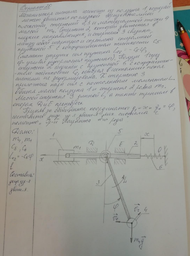 Типовой расчет по теоретической механике, "Уравнения Лагранжа 2-го рода", зачтено