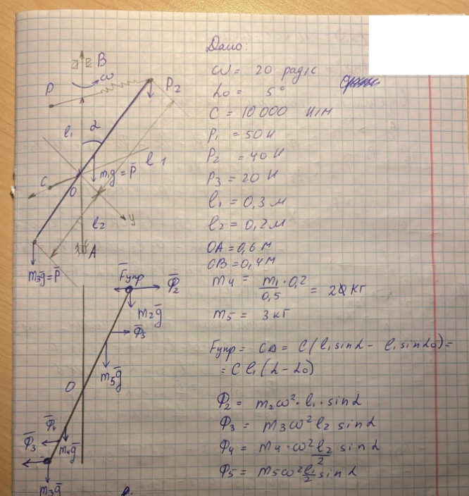 Типовой расчет по теоретической механике, "Динамические реакции подшипников", зачтено
