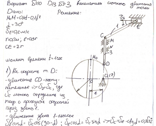 ДЗ 3: Кинематика сложного движения точки вариант 10
