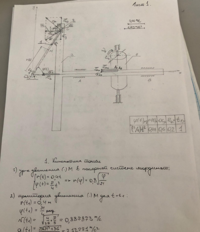 Типовой расчет по теоретической механике, "Кинематика точки", зачтено