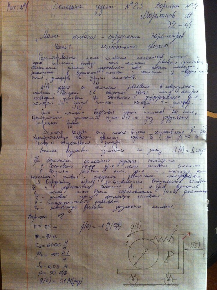 Вариант 12 - ДЗ №2 - Колебания системы с одной степенью свободы