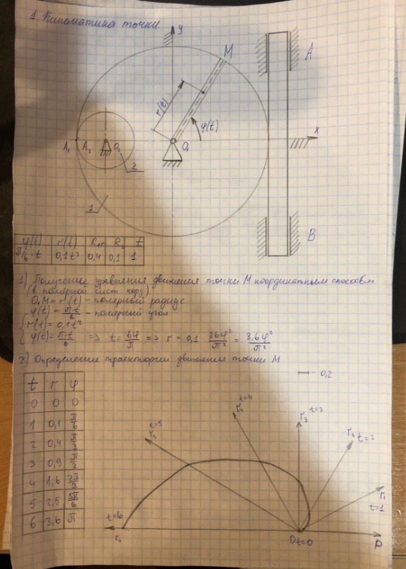 Типовой расчет по теоретической механике, "Кинематика точки", зачтено