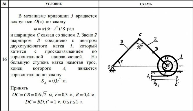 Вариант 16 - ДЗ №2 - Кинематика плоского движения твердого тела