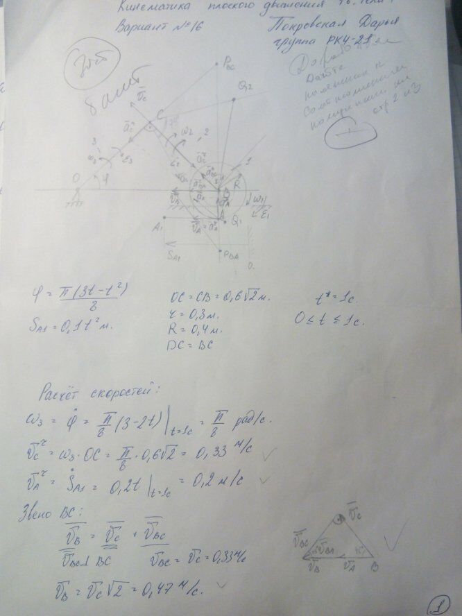 ДЗ 2: Кинематика плоского движения твердого тела вариант 16