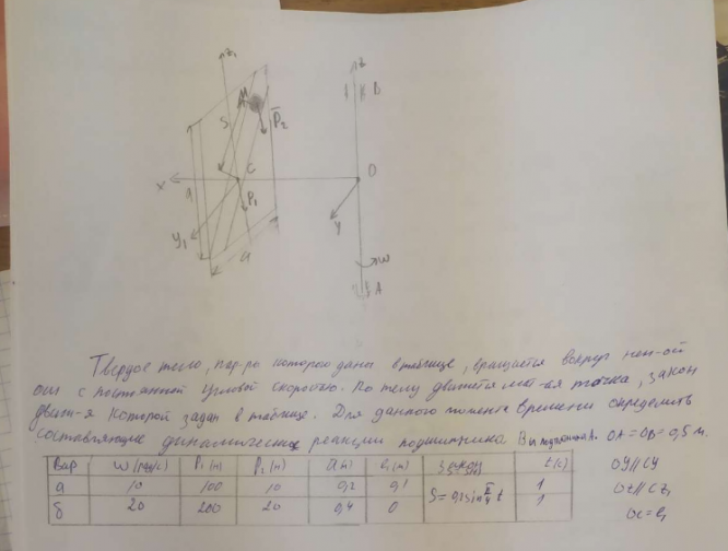 Типовой расчет по теоретической механике, "Динамические реакции подшипников", зачтено.