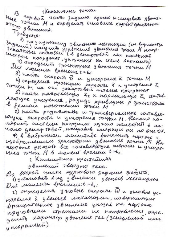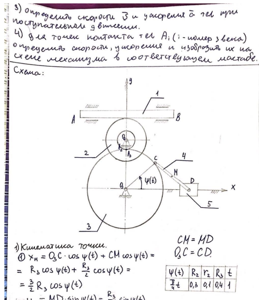 Типовой расчет по теоретической механике, "Кинематика точки и простейшие движения твердого тела", зачтено