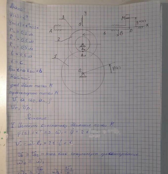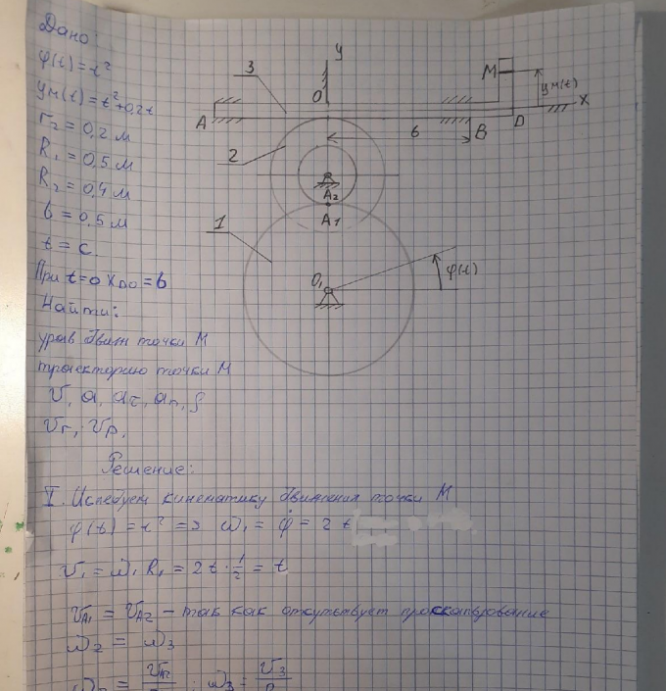 Типовой расчет по теоретической механике, "Кинематика точки и простейших движений твердого тела", зачтено