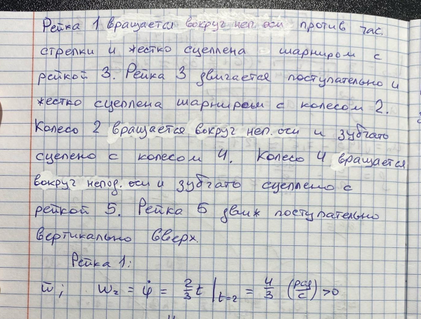 Типовой расчет по теоретической механике, "Кинематика точки и простейших движений твердого тела", зачтено